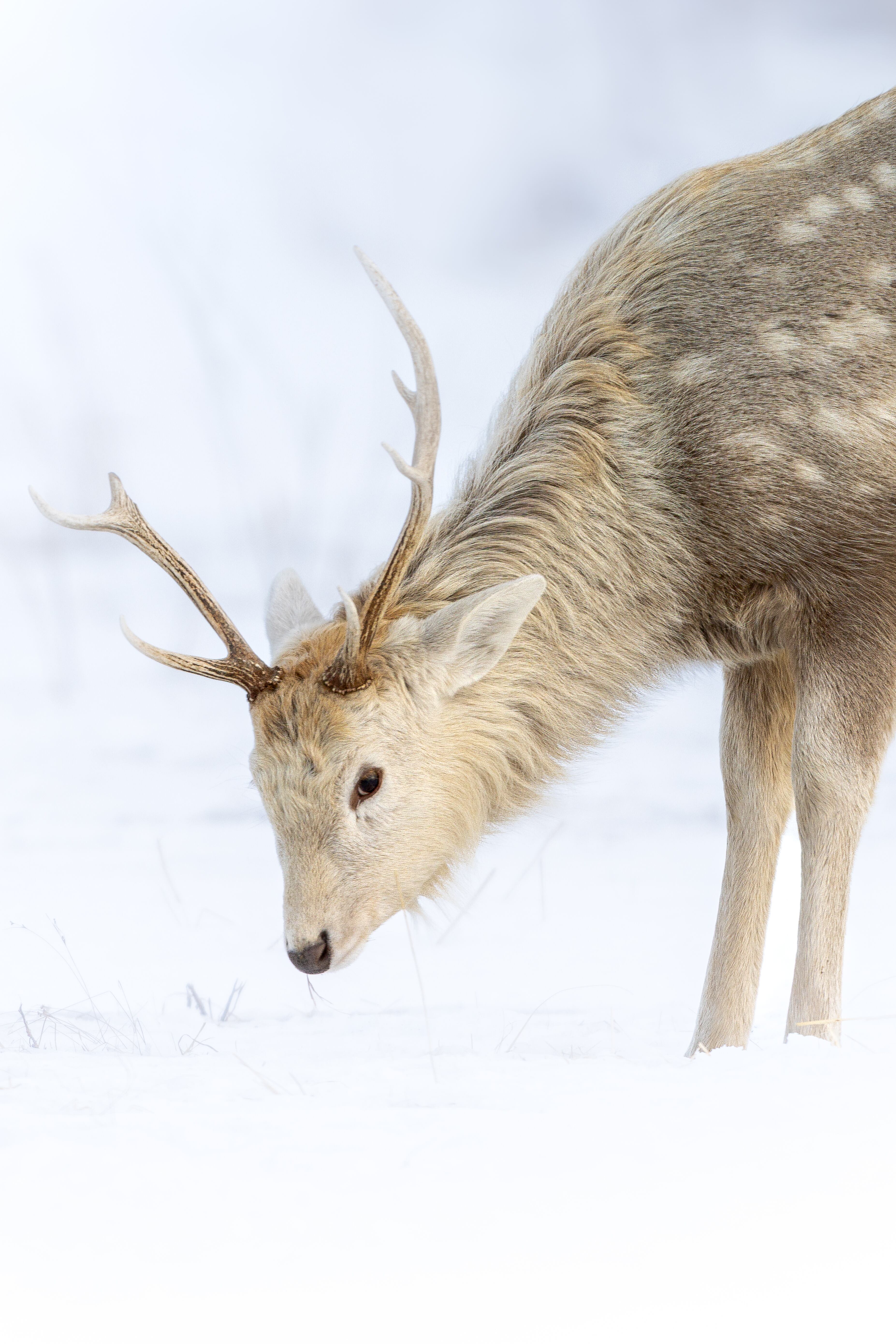 静まり返った冬の世界の中で、静かに雪を掘り、命をつなぐ姿。