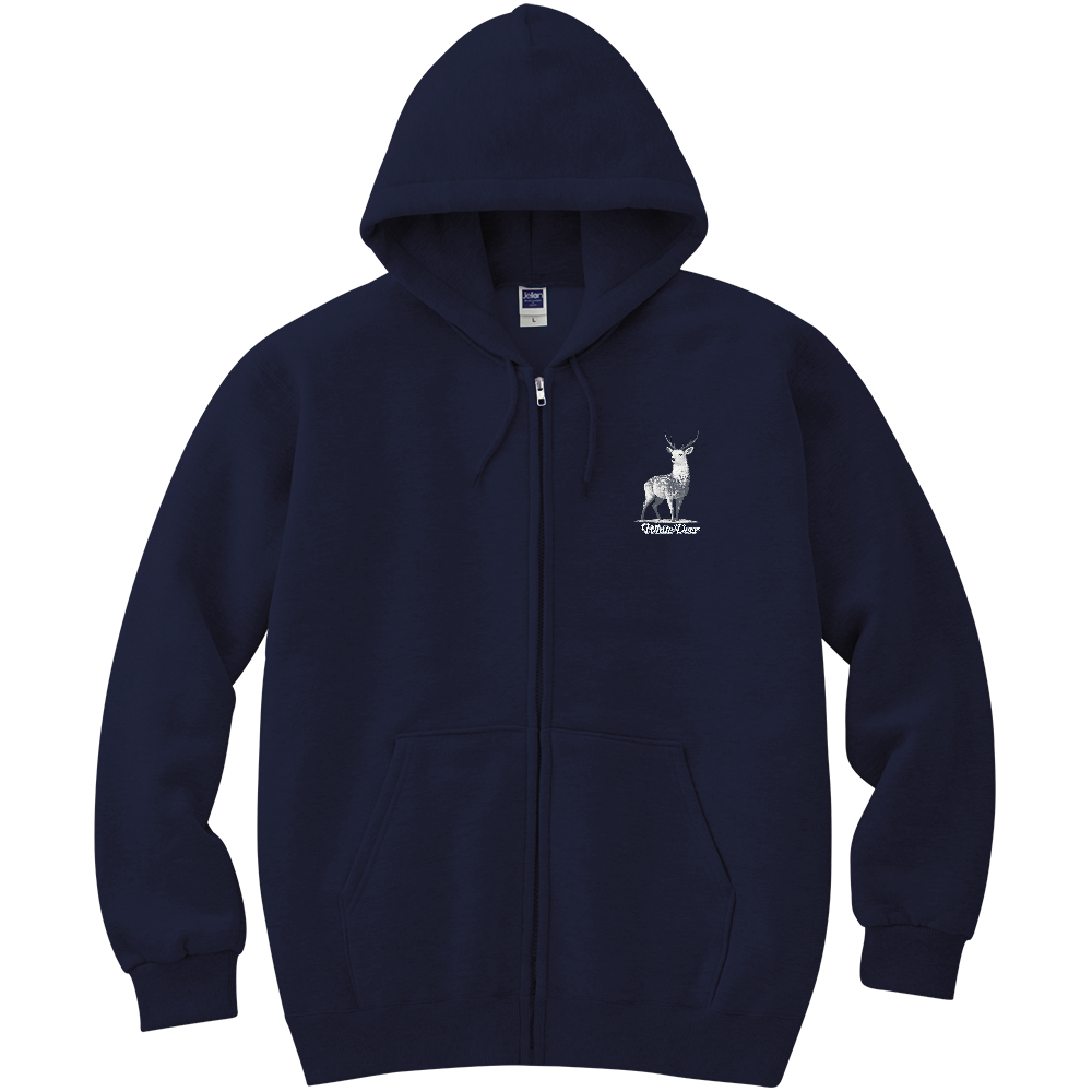 胸元には白鹿の写真と「White Deer」のロゴを配置。