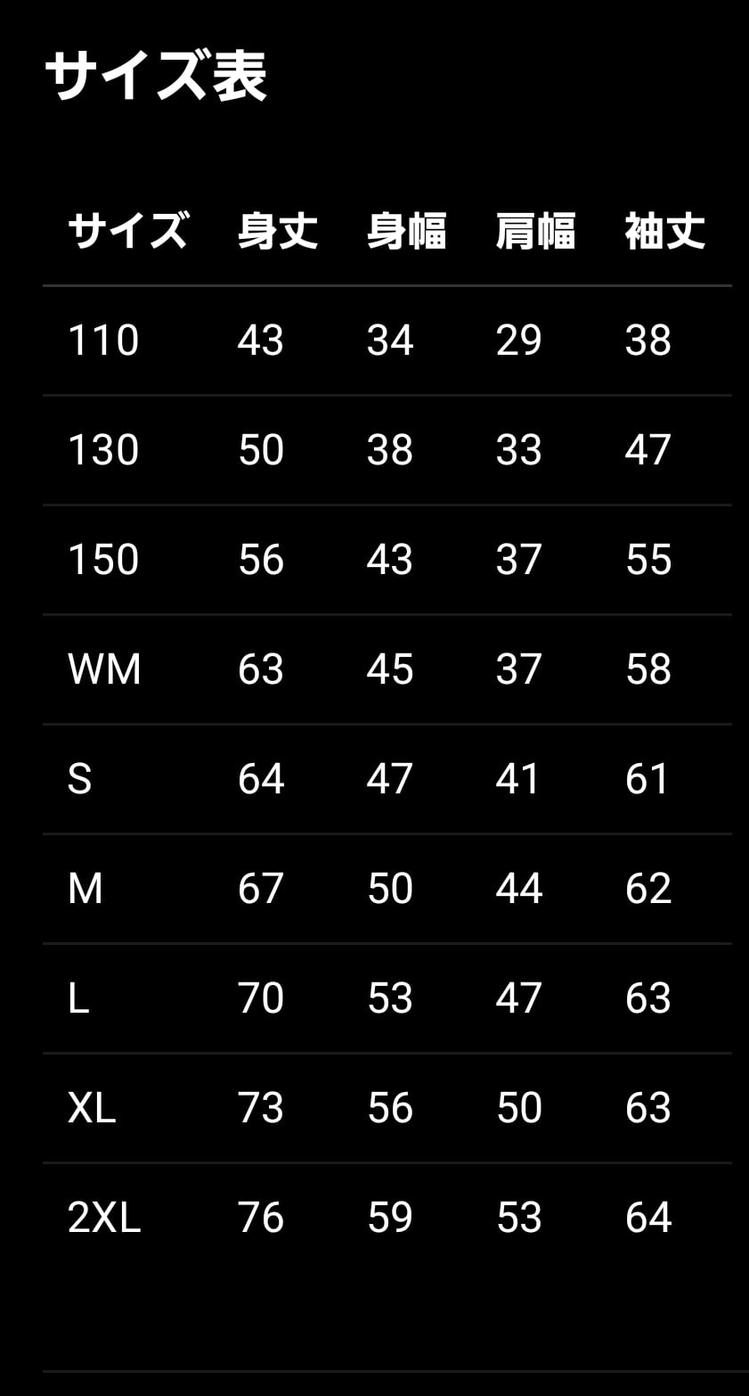 110 / 130 / 150 / WM / S / M / L / XL / XXL